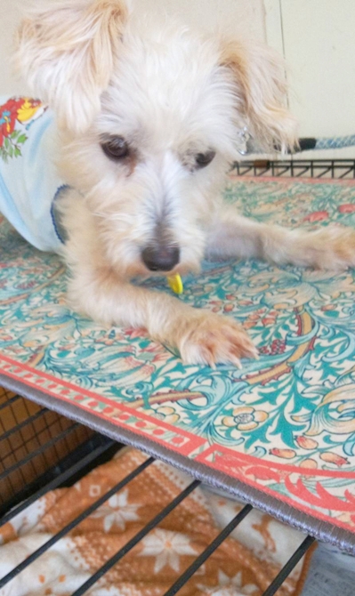 トイレは外に出るまではケージの中では我慢します。吠えないし、本当に手がかからない良い子です。