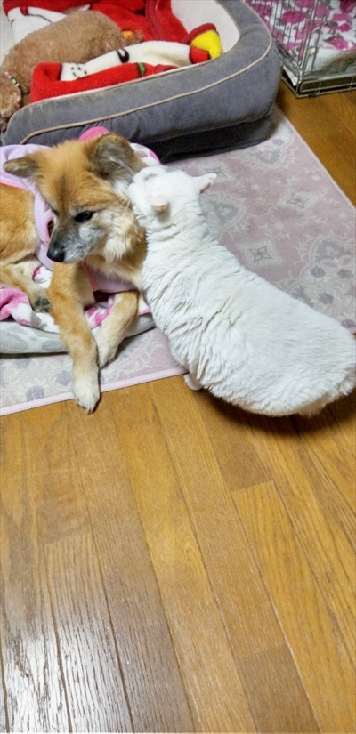 猫のメリーちゃんにしつこく絡まれても我慢してます