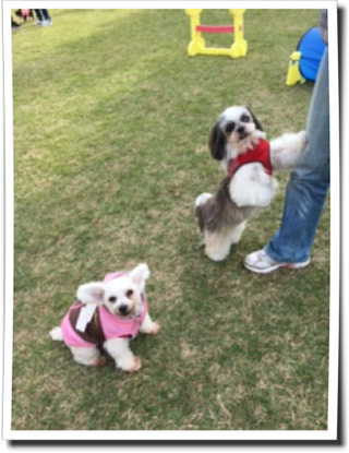 外のお散歩は大好きで、人にも犬にも寄っていき、